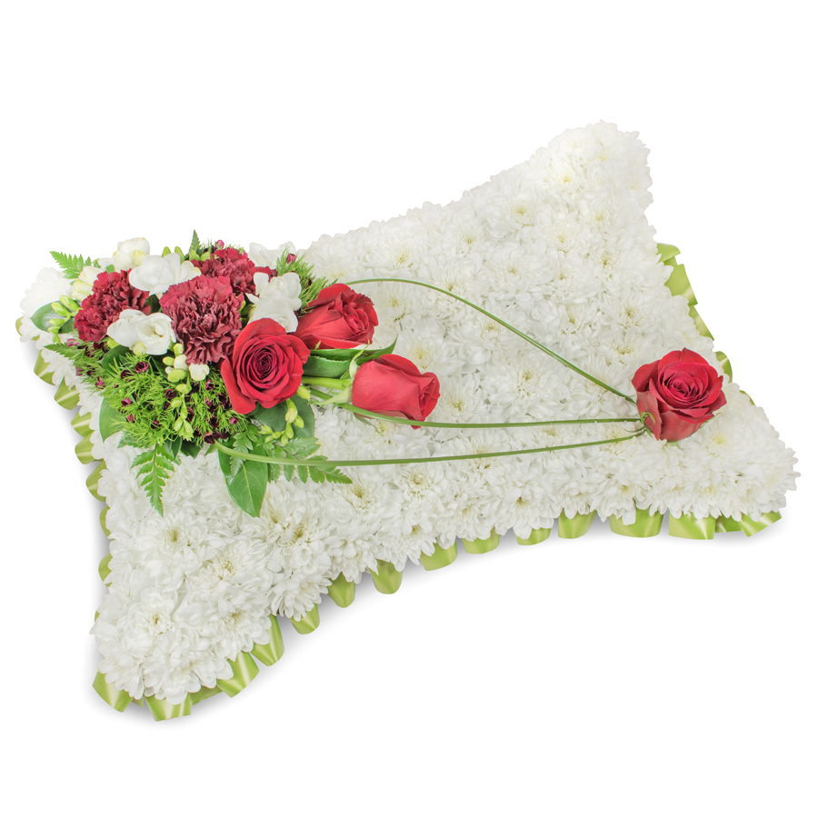 Offer a graceful tribute with our refined sympathy bouquet, designed to communicate care and tenderness. This stunning floral display blends the purity of white chrysanthemums and the elegance of white freesias with the striking beauty of red roses and dark red carnations. Enhanced with the subtle charm of dianthus and bear grass, every flower is hand-picked to guarantee unmatched freshness and a visually captivating creation.